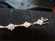 Jabberjewelry.com has this vintage white gold 10 kt stamped on end cap rollo chain style charms bracelet 7" long largest charm measures 1" long to top bail by 12 mm wide by 6 mm thick weight 9 grams lobster claw clasp unique and one of a kind white gold charms bracelet charms are unique too has a genuine blue sapphire/ruby purse one side ruby one side blue sapphire then a diamond butterfly 5 pts total then puffed heart, money bag, cross, diamond high heel 5 pts, diamond key 6 pts well made charm, diamond anchor 16 pts well made charm, diamond purse 5 pts in diamonds all genuine stones in this bracelet all attatched to bracelet so you will not loose a single one, bracelet in excellent condition. Shipping $7.50. Retail Price $800.00 Our Price $350.00 Item # 11435 Jabberjewelry.com